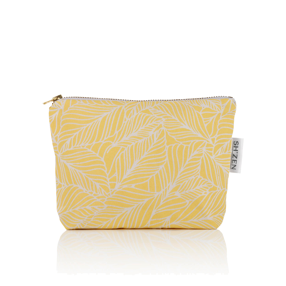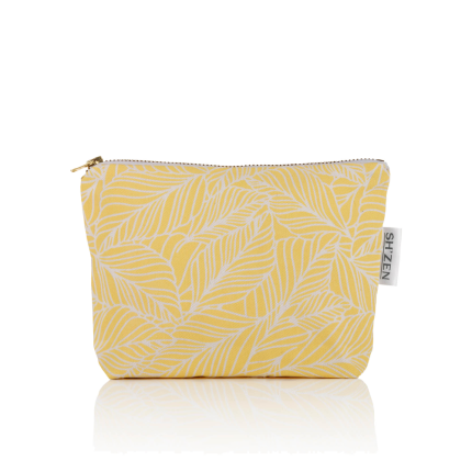 Cosmetic Bag - Cotton Mini - Yellow & White Leaf Design